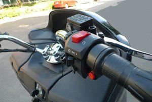 - There is more storage in the front under the handlebars in a large "glove box" and another compartment between the riders feet.