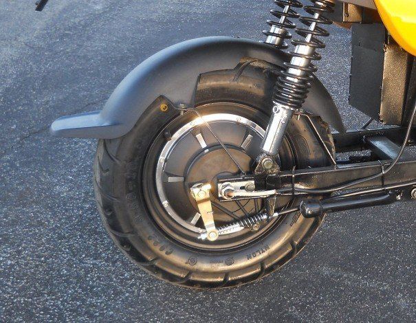 - With the motor in the wheel, there are no limitations on the geometry of the vehicle forced by the issues of lining up the drive of the in chassis motor with the movement of the suspension and the changes in chain/belt tension. This allows much longer swing arms, lowering of the battery mass, and the positive change in the dynamics of the rear suspension.