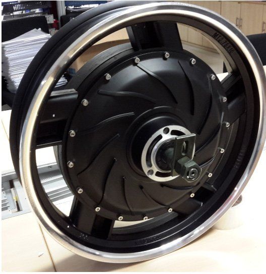 We offer hub motors (also called wheel motors) in single stator in power to 15 kw with matching controllers to 84 volt nominal in already developed and tested packages. (We can offer higher power for higher voltage systems to 21 kw in single stator in any of our five rim sizes, or up to 50 kw on request)