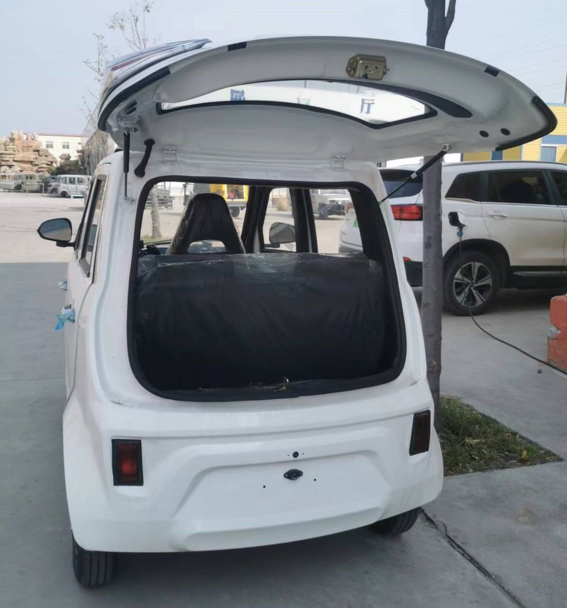The T3-5D has been redesigned as part of our continued redesign and upgrade of our T3 line of enclosed trike vehicles. The newest model is the 3rd version having a rear hatchback door instead of the previous side opening door. The body has been changed to increase body rigidity and to add more frontal crash resistance. Power and speed has been increased. More space was added behind the rear seat to place packages without needing to fold the seat down.