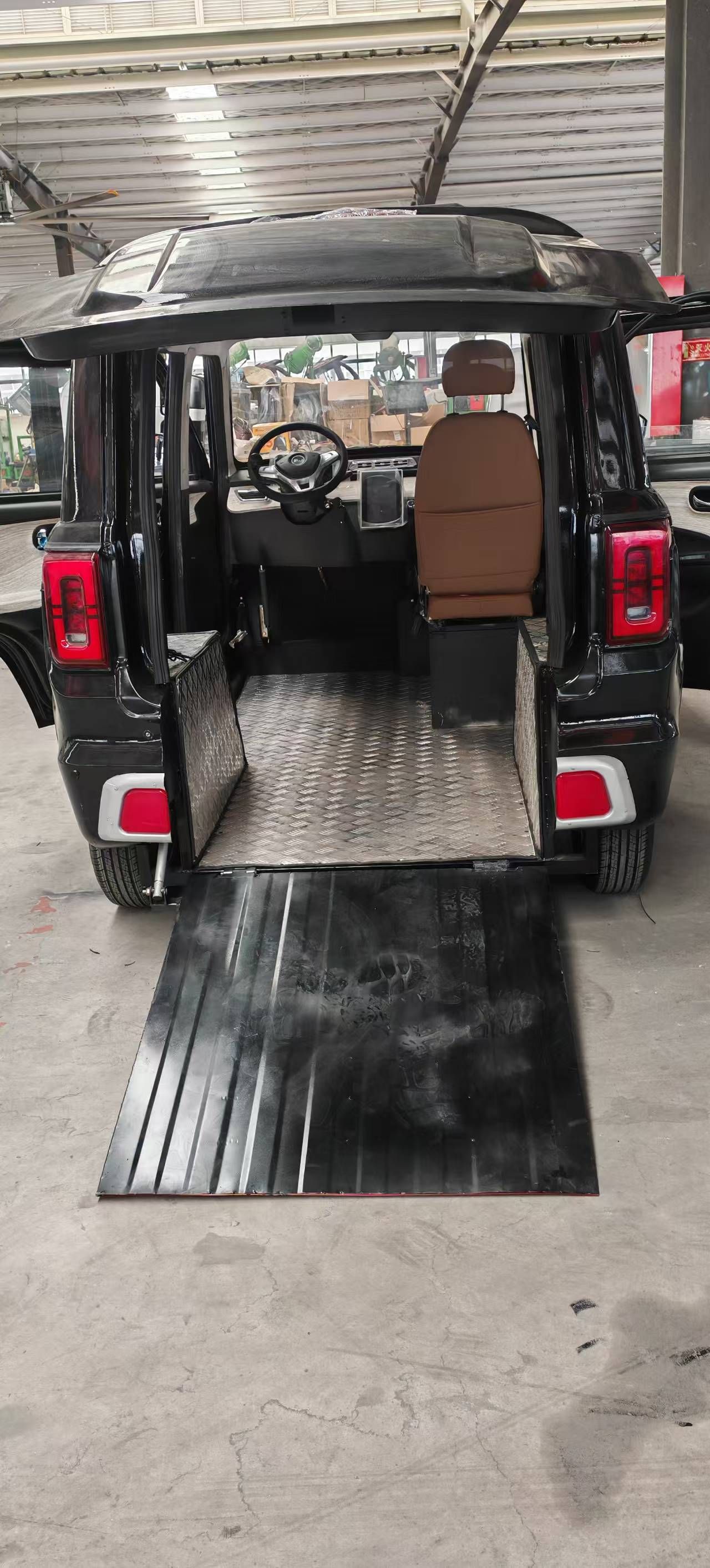 · Electric rear ramp controlled by key fob.