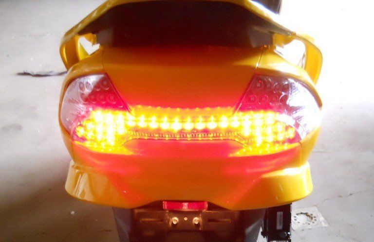 - There is more storage in the front under the handlebars in a large "glove box" and another compartment between the riders feet.